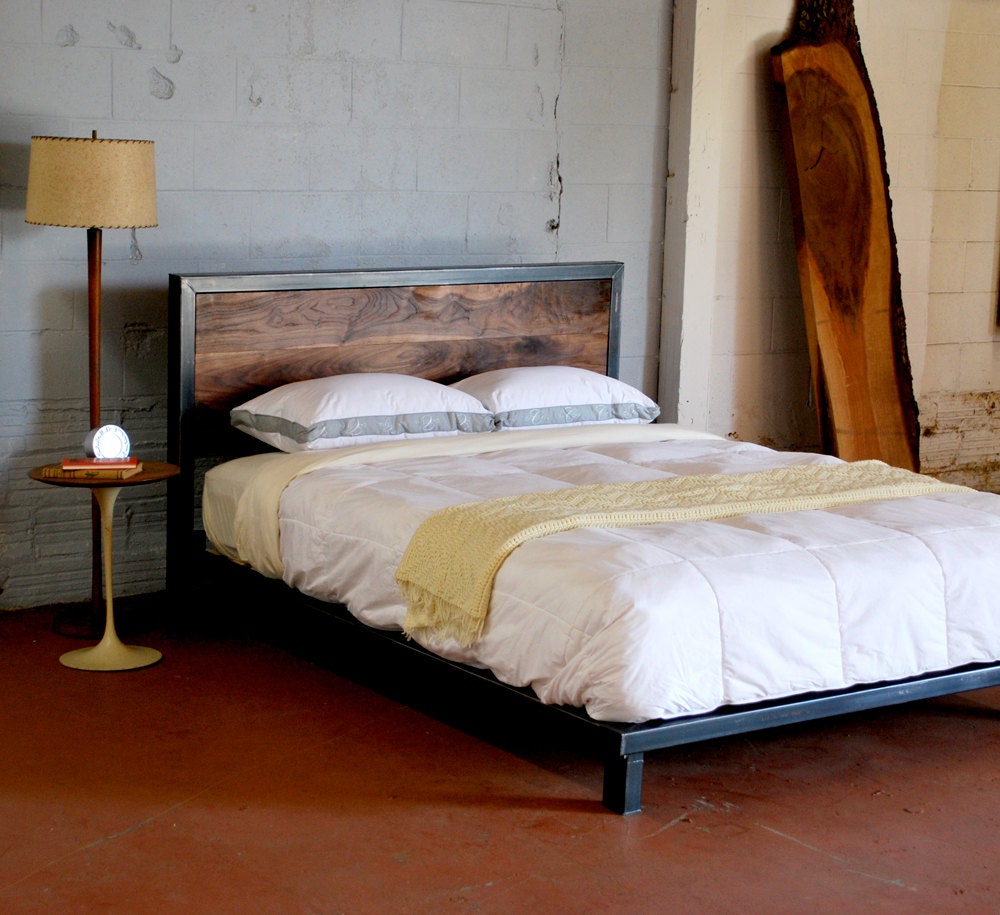 kraftig platform bed rough walnut headboard king size